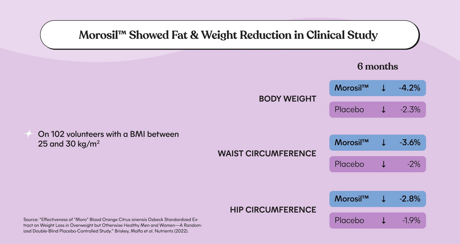 Fight visceral fat, activate metabolism and support healthy weight management with clinically-studied MorosilTM.